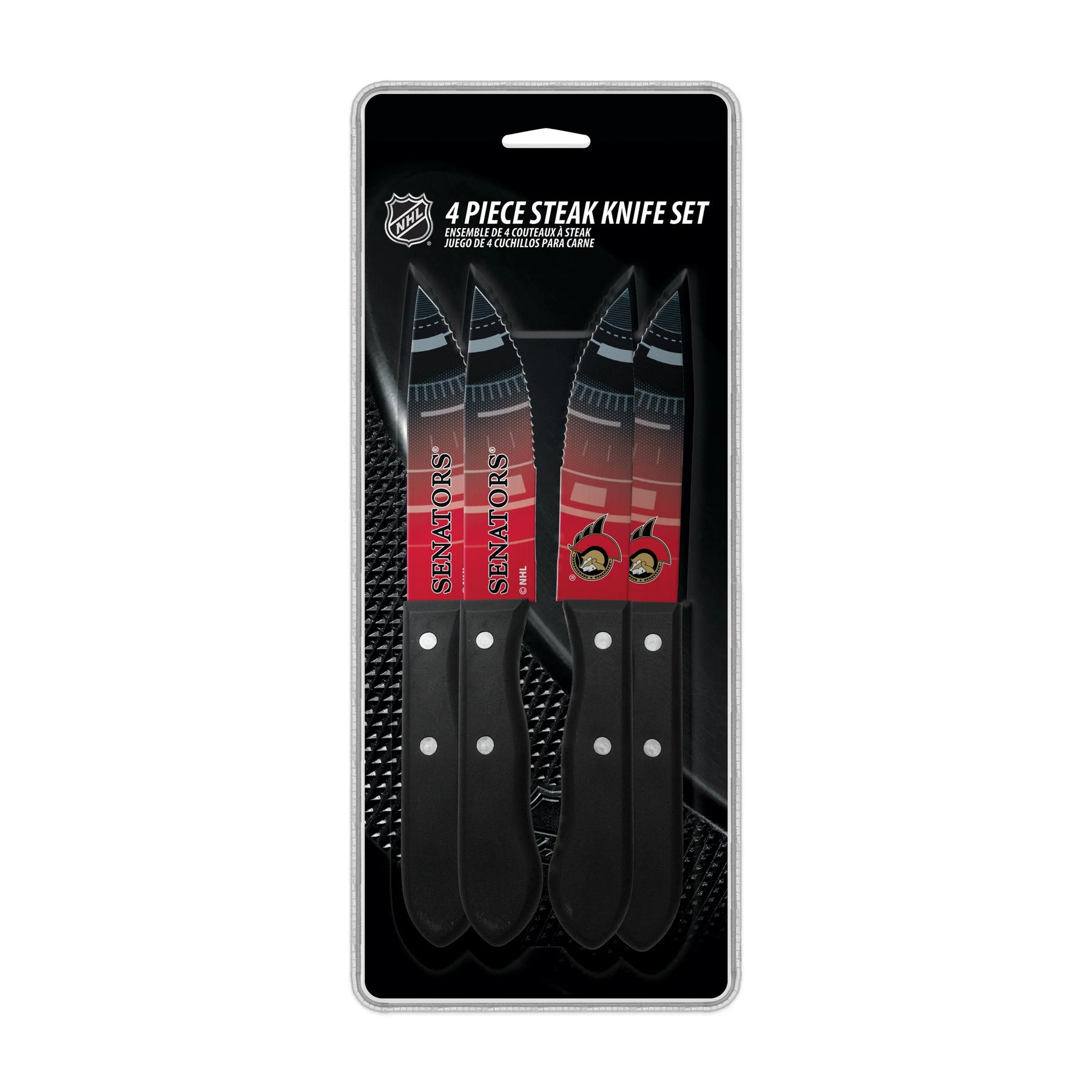 For the die-hard Senators fan who takes their kitchen as seriously as they take their hockey. This exclusive 4-piece steak knife collection features premium blades with the iconic Ottawa Senators branding, perfect for carving up game day feasts or impressing guests at your next tailgate. Sharp, durable, and unmistakably red and black—because your cutlery should rep your team just as hard as you do. Elevate your dining experience while showing your colors.